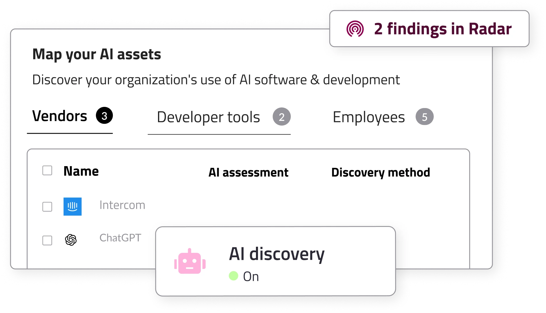 - AI Radar detects SaaS tools, APIs, and embedded models