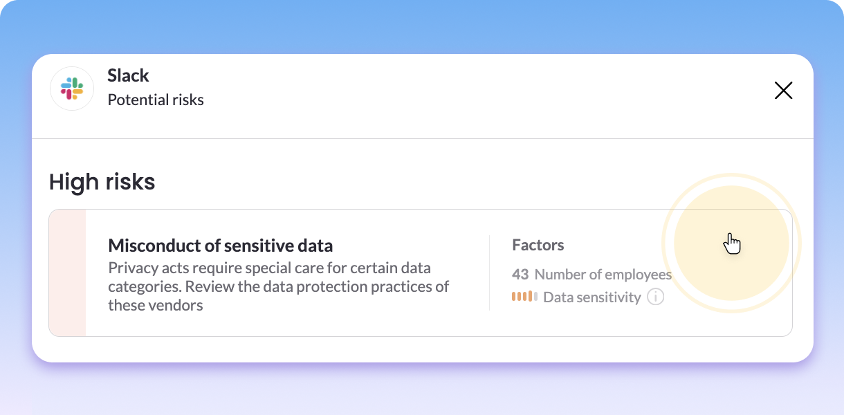 MineOS continues to leverage AI to enhance user experience and data security. A notable improvement in this regard is the integration of in-line risks and suggestions directly in the Data Inventory, per data source. Previously, users had to navigate to a separate menu to understand the potential risks associated with each data source. Now, for data sources where vendor risk has been calculated (based on the likelihood and severity of risks), our AI will display the number of high-potential risks upfront, alongside other details about the data source.