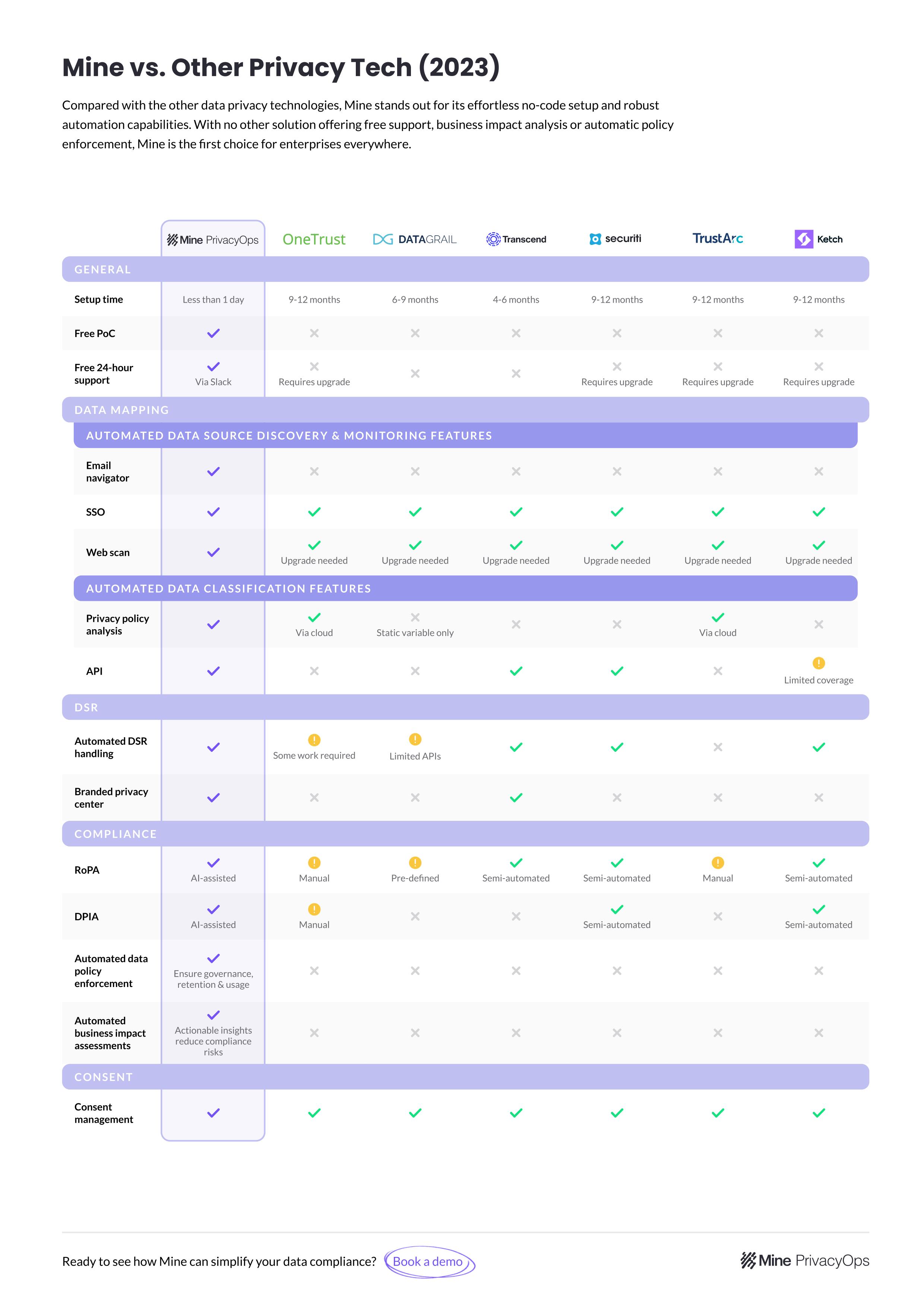 Don't shy away from booking demos and taking on trial periods with several data privacy management tools. Testing the software for your actual business needs is the best way to indicate which tool fits your needs. Furthermore, the interactions you have with a provider's sales, product, and support teams will give you a clue as to whether you're making the right decision when you choose them.