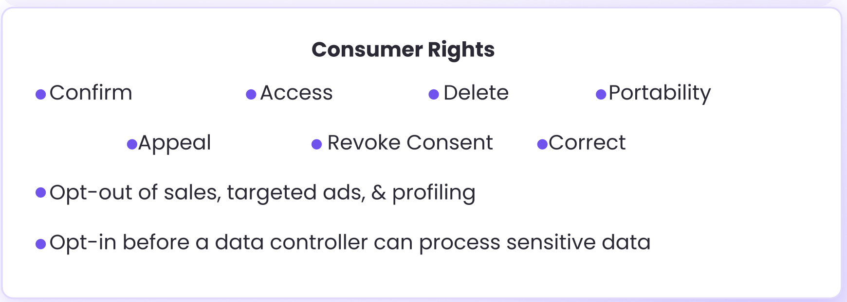 Oregon and Delaware’s bills also established the most progressive list of data rights in the American data privacy landscape, and New Jersey–mostly–follows suit.